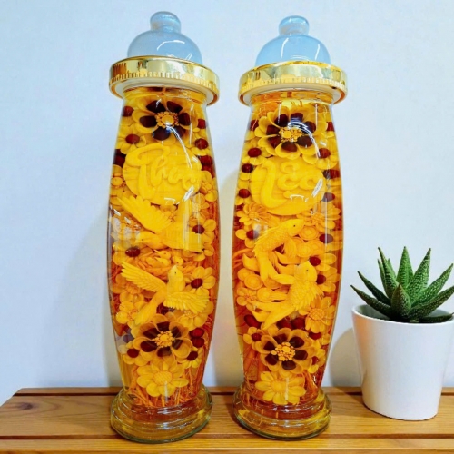 Bình sâm điêu khắc hình Long Phụng Sum Vầy 14 lít được tạo nên bởi những củ nhân sâm tươi Hàn Quốc, được chạm khắc tinh xảo bởi bàn tay tài hoa của những nghệ nhân trong nghề đang được đông đảo người tiêu dùng săn đón.
