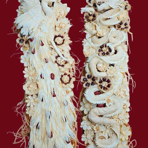 • Củ sâm tươi điêu khắc hình Long Phụng Sum Vầy.