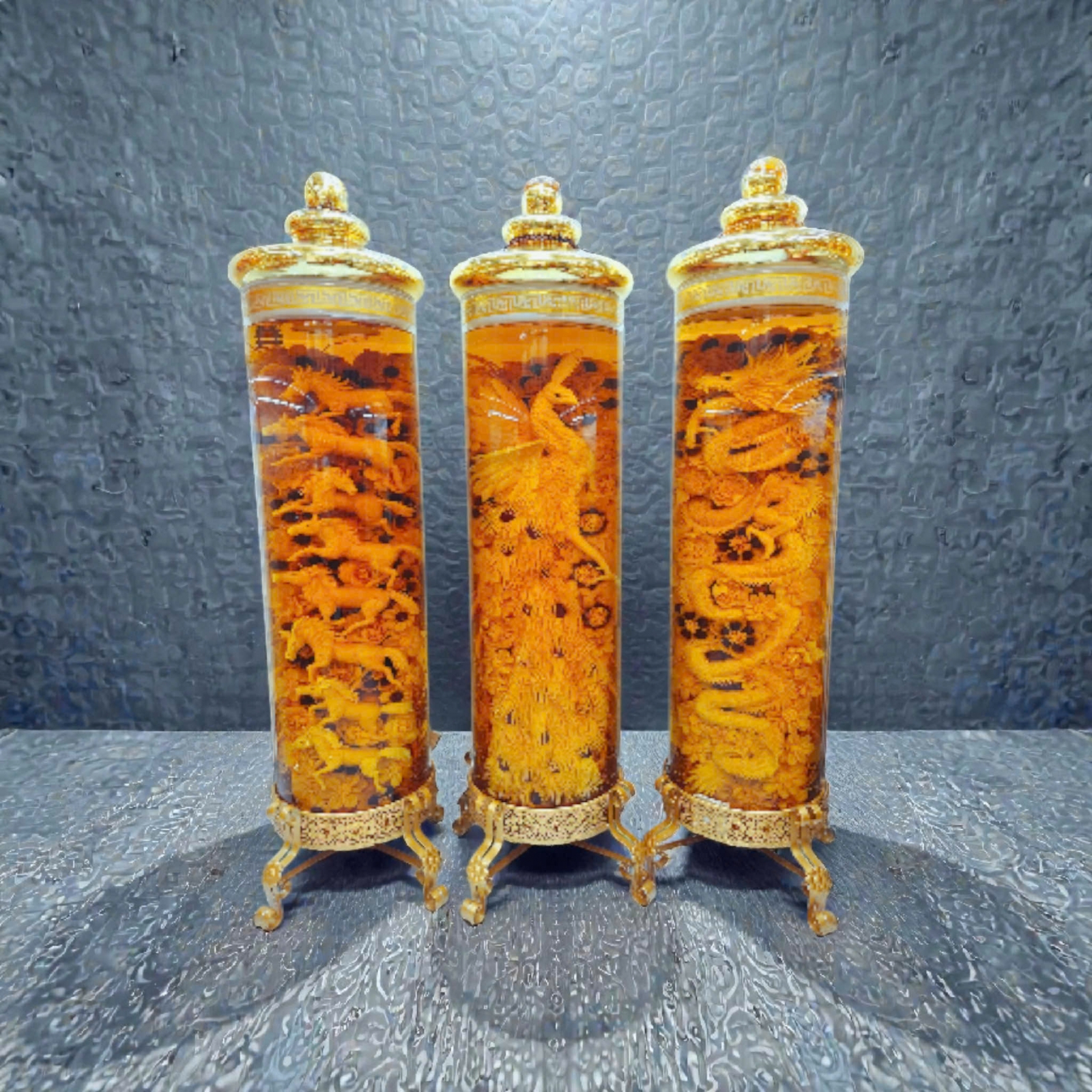 Bình sâm điêu khắc hình Long Phụng Sum Vầy 70 lít được tạo nên bởi những củ nhân sâm tươi Hàn Quốc, được chạm khắc tinh xảo bởi bàn tay tài hoa của những nghệ nhân trong nghề đang được đông đảo người tiêu dùng săn đón.