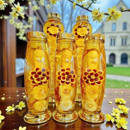 Địa chỉ Sản xuất Bình Sâm Điêu Khắc Phúc Lộc Thọ 3,5 lít mã No19 tại nhà Trang Minh được ngâm kết hợp độc đáo từ củ nhân sâm tươi có tuổi đời trên 6 năm tuổi, qua đôi tay của các nghệ nhân điêu khắc đã làm nên tuyệt phẩm vô cùng sang trọng, sắc sảo. Hoa sâm được kết lại từ những lát sâm tươi tỉa hoa độc đóa tạo nên 1 sản phẩm vừa sang trọng, đẳng cấp. Hứa hẹn sẽ là 1 sản phẩm chiều được lòng của nhiều Khách Hàng.