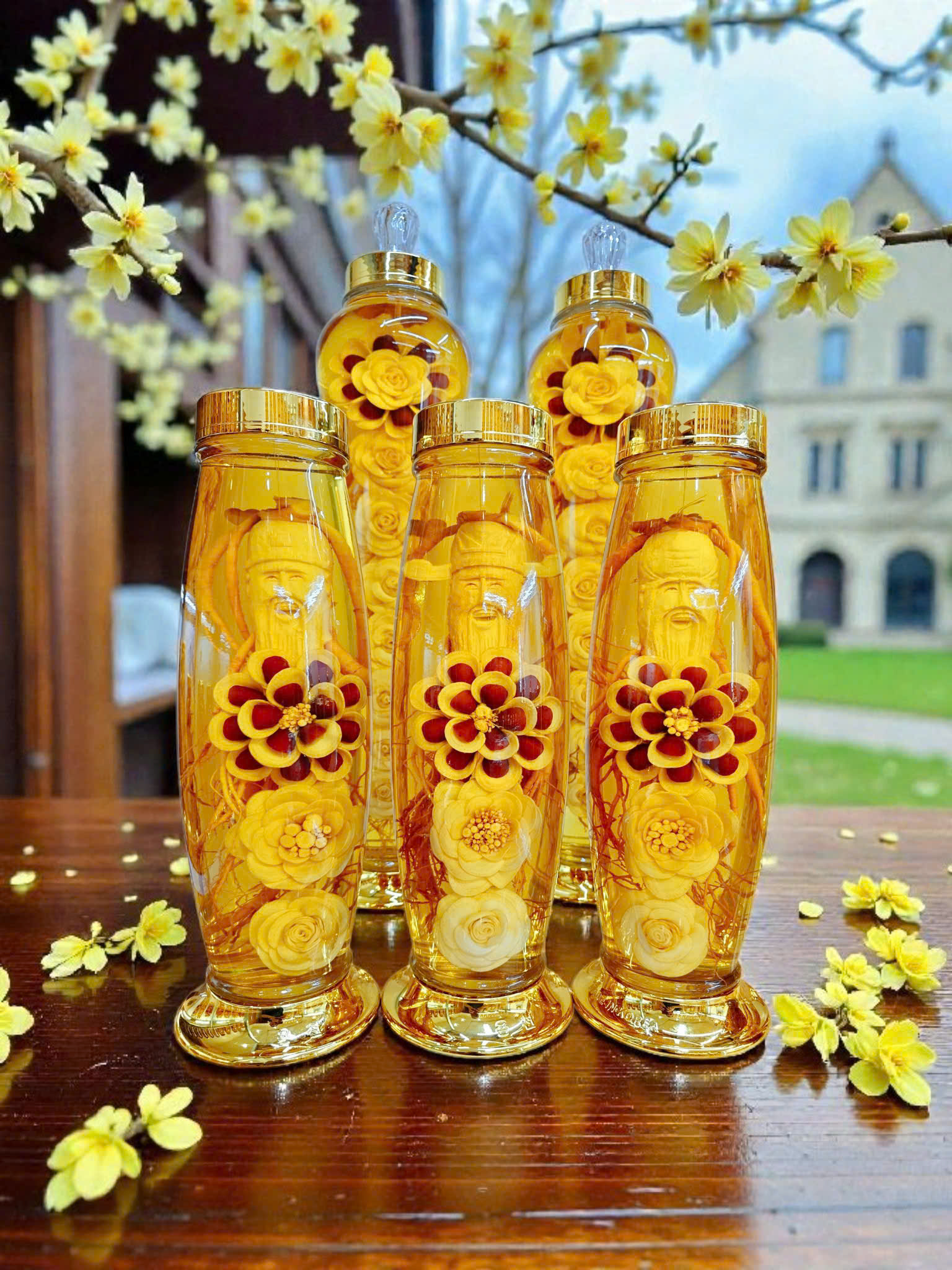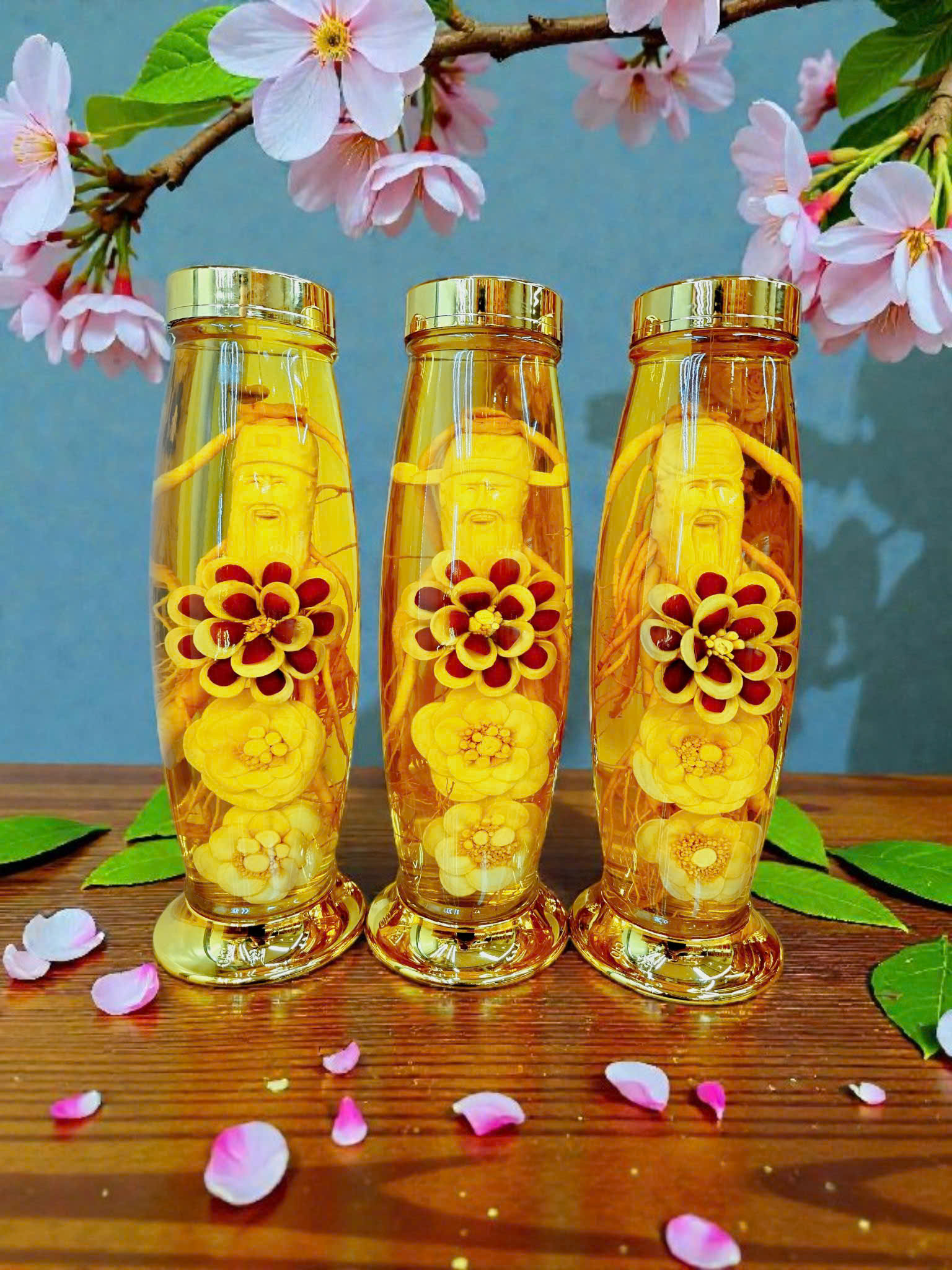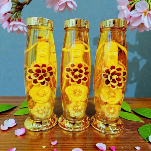 Địa chỉ Sản xuất Bình Sâm Điêu Khắc Phúc Lộc Thọ 3,5 lít mã No19 tại nhà Trang Minh được ngâm kết hợp độc đáo từ củ nhân sâm tươi có tuổi đời trên 6 năm tuổi, qua đôi tay của các nghệ nhân điêu khắc đã làm nên tuyệt phẩm vô cùng sang trọng, sắc sảo. Hoa sâm được kết lại từ những lát sâm tươi tỉa hoa độc đóa tạo nên 1 sản phẩm vừa sang trọng, đẳng cấp. Hứa hẹn sẽ là 1 sản phẩm chiều được lòng của nhiều Khách Hàng.